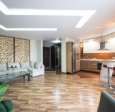 Мебель: Описание квартиры посуточно Челябинск по улице Сони Кривой 26: - Эксклюзивная большая двухкомнатная квартира. Две раздельные комнаты, большая гостиная-студия, огромная кровать в спальне, дорогой интерьер, наличие кондиционера, двух больших ЖК-панелей, панорамный вид на город с большой лоджии, закрытая территория двора, местоположение в самом центре города придают квартире статус элитного объекта размещения. - В спальне идеальную для отдыха атмосферу создают кровать нестандартных размеров, с удобным ортопедическим матрасом, лаконичный интерьер в теплых естественных тонах, плотные портьеры, обеспечивающие полную светоизоляцию и качество сна. - В гостиной удобный угловой диван, трансформирующийся в полноценное двуспальное место. Есть комфортный рабочий уголок для деловых гостей: письменный стол, стул, светильник. - Кухня отделена от гостиной барной стойкой и оснащена всей нужной для проживания мебелью и бытовой техникой.